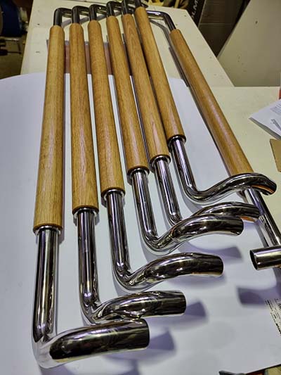 Valmistettu mm. ruostumattomasta teräksestä ( rst ), messingistä, tammesta ja akryylivetimiä mustana ja kirkkaana.
